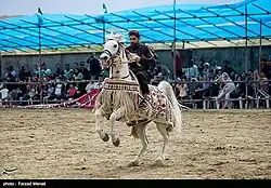 During the 1991 Iraqi uprisings, the Peshmerga (when they were a rebel group rather than an official armed force) rode the Kurdish horses and used them to transport weapons thru the mountains.[1] In 2019, Iran hosted the first National Kurdish Horse Beauty Festival in Ardebil province.[5] A two-day festival dedicated to the breed was held in Kermanshah province in 2023.[6] A festival was also held for it during 2023 in Sulaymaniyah.[1]