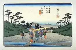 Hiroshige's print of Kusatsu-juku, part of the Sixty-nine Stations of the Kiso Kaidō series