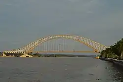 The Kutai Kartanegara Bridge (also known as the Mahakam II Bridge) is an arch bridge, formerly a suspension bridge, located in Kutai Kartanegara Regency, East Kalimantan, on the island of Borneo in Indonesia. It crosses the Mahakam River and connects Tenggarong and Tenggarong Seberang districts, as well as roads that lead to Samarinda.