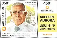 10. "New stamp features 2018 Aurora Prize Laureate Kyaw Hla Aung". news.am. 16 October 2019. Retrieved 15 February 2020.