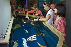 A large aquarium with koi represent water's great importance for all forms of life.