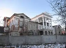 The White House (also known as the Demidov Manor House) is a noted historical building in Kyshtym. The grand Palladian townhouse with two lateral towers is set on a hill in a fenced park. It is featured in Kyshtym's city emblem.