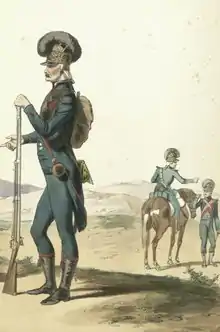 Created by Joseph Marie Dessaix in 1792, it was at first part of the Army of the Midi commanded by the Marquis de Montesquiou that invaded Savoy. Later the legion took part in the siege of Toulon in 1793 and fought against the Spanish in the War of the Pyrenees in 1794-5. In 1796 it was transferred to the Army of Italy where it was badly mauled at the Battle of Rivoli. Later the legion became part of the 4th Infantry demi-brigade and then of the 27th Infantry demi-brigade.[1]