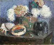 In the 1950s Gard painted a series of still lives and flowers where he tried to fuse together two of his preoccupations in the same work, which, technically, are not easy to reconcile and from which he turns sometimes to one, sometimes to the other, the two tendencies fighting, one yielding to the other in turn: the love of a precise contour, the solidness of things, detail; and then the love of fireworks, of explosions of colour.