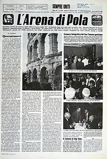 L'Arena di Pola (lit.'"Pola's Arena"') is an Italian newspaper founded in Pola (today Pula, Croatia), on 29 July 1945.[1] Following the Yugoslav/ Croatian annexation of the city, the daily newspaper was moved first to Gorizia and then to Trieste.[2] After it was moved to Gorizia, it became a periodical newspaper.