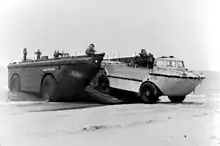 LARC-LX unloading a smaller, aluminium-hulled LARC-V