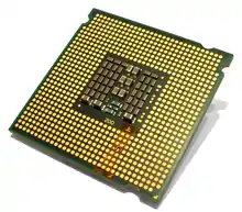 LGA 771, also known as Socket J, is a CPU interface introduced by Intel in 2006.[1] It is used in Intel Core microarchitecture and NetBurst microarchitecture (Dempsey) based DP-capable server processors, the Dual-Core Xeon is codenamed Dempsey, Woodcrest, and Wolfdale and the Quad-Core processors Clovertown, Harpertown, and Yorkfield-CL. It is also used for the Core 2 Extreme QX9775, and blade servers designated under Conroe-CL.