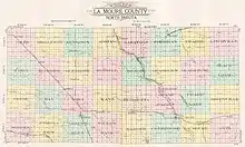 The county organization was effected on October 27, 1881. Its boundaries were altered in February 1881 and in March 1883. It has retained its present boundary since that time.[5] The present county seat, LaMoure, was founded in 1882, and the county seat was transferred to that community soon after.[6]