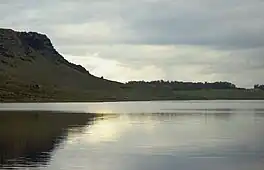 La Brava is a lake in the eastearn part of the Balcarce Partido in Buenos Aires Province, Argentina. It lies just on the border with General Pueyrredón, 40 kilometres (25 mi) northwest of the city of Mar del Plata and 25 kilometres (16 mi) east of the town of Balcarce. Located within Mount La Brava, the lake area is privately owned, although open to the public for fishing and camping. There are several campsites around the lake, like Ruca Lauquen on the east coast and the Fishing Club Balcarce on the north, both of them with recreational facilities and boat piers.[1] The lake is described as a rift lake or tectonic lake, probably a natural reservoir formed by dunes.[2] La Brava is the habitat of a number of bird species, like swans, ducks, coots, herons and gulls. Capybaras and otters dwell in its shores. The lake also support a fish community dominated by the silverside and the dentudo.[3] The landscape has been compared with that of the lakes of western Patagonia.[4]