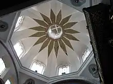 The church was consecrated in 1778 with Our Lady of the Pillar and Saint John of Nepomuk as patrons[2] by the Archbishop of Mexico, Alonso Núñez de Haro y Peralta.[6] The relics used to consecrate the church included a fingerbone from Saint John, a 25 cm gold statue of him, as well as a shroud that had been in contact with the Shroud of Turin. A wooden statue of Our Lady of the Pillar, which was inherited by Mother Maria Ignacia from her mother, was placed on the main altar.[2]