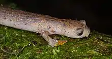 The La Loma salamander (Bolitoglossa colonnea) is a species of salamander in the family Plethodontidae. It is found in Costa Rica and western Panama. The common name refers to La Loma, its type locality on the trail between Chiriquicito and Boquete, earlier in the Bocas del Toro Province but at present in the Ngäbe-Buglé Comarca, Panama.[3] Its natural habitats are humid lowland and montane forests. It is largely an arboreal species living in bromeliads, but it can be found on the ground too. It is threatened by habitat loss.