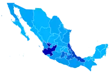 The World Christian Encyclopedia reports 430,000 adherents in Mexico in 2000 and 488,000 in 2010.[140] Based on the number of congregations and the average number of members per congregation, anthropologist Hugo G. Nutini estimated in 2000 that the Church had a total membership of around 1,125,000 adherents worldwide, with more than two-thirds of those in Mexico.[47] In 2008, Fortuny and Williams reported a membership of 7,000,000 adherents worldwide.[141] Anthropologist Ávila Meléndez says that official membership figures are plausible given the great interest it has generated among "religious authorities" and the following it receives in Mexico.[135]