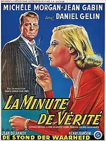 The Moment of Truth (French: La Minute de vérité, Italian: L'ora della verità) is a 1952 French-Italian drama film directed by Jean Delannoy and starring Michèle Morgan, Jean Gabin and Walter Chiari.[1] Delannoy co-wrote the screenplay with Henri Jeanson, Roland Laudenbach and Robert Thoeren. The music score is by Paul Misraki, Winfried Zillig and Georges Van Parys. It was shot at the Francoeur Studios in Paris. The film's sets were designed by the art director Serge Piménoff.