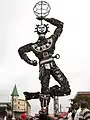 This negative designation is based on the strong protests carried on by local media and native populations against La Nouvelle Liberté. The first polemics mainly concerned the aesthetical features of the sculpture, made of recycled metallic pieces. Also, a violent controversy was raised by media on the origins of the artist (coming from the West Region of Cameroun) taking the fold of an ethnic struggle between the native and not native population of Douala. These diatribes led to subsequent attacks and vandalism of the work.