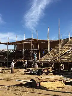 The construction starts when a dot is marked with a stake at the center of the land where it will be bulit.[1][7]