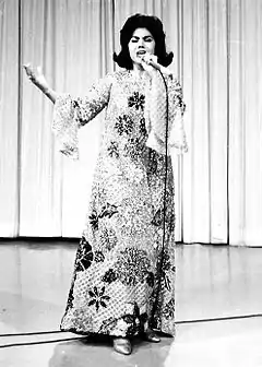 La Prieta Linda, who owed her stage name to the famous comedian Clavillazo, debuted as a singer with Silvestre Vargas's mariachi.[3] In 1950, her elder sister Flor Silvestre, who had already signed with Columbia Records' Mexican branch, invited her to form a duet named Las Flores; they recorded two songs"Los desvelados"[4] and "Lo traigo en la sangre"[5] (with Rubén Fuentes' mariachi)for Columbia. In 1952, La Prieta Linda recorded her first hit, "Quieto, capulín", for Columbia. Later, with the help of singer and actress Lola Beltrán, La Prieta Linda had her own radio programs and signed a contract with Peerless Records (Beltrán's record label). She made most of her 1950s recordings for Peerless, including some collaborations with Beltrán, David Záizar, and Juan Záizar. She appeared in her first film in the late 1950s. In the 1960s, she signed with RCA Víctor and recorded new hits such as "Mil cadenas" and "Al ver". In 1979, she won the first Ranchera Music Festival with the song "Amantes de una noche".[3] Over the years Jiménez recorded over 40 albums and made various tours across Mexico and other countries.[3] In her acting career, her comic role in the film Valente Quintero was highly notable since she gave a performance without singing.[3]