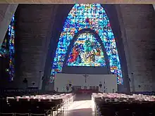 Inside of the Star chapel, it can be seen a glass with the Christmas scene on it