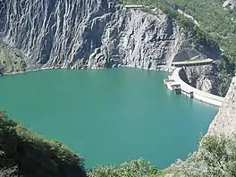The Lac de Monteynard-Avignonet (Lake of Monteynard-Avignonet) is an artificial water reservoir for the Électricité de France (EDF) power station on the river Drac. It belongs to the department of Isère. It is bounded by the canyons of the Drac and Ebron.