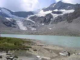 Lac des Évettes is a lake in the Vanoise Massif of the Savoie department of France. The lake formed between 1939 and 1949, after the glacier that covered the area melted. Today the glacier ends almost 1 km from the lake's shore.