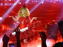 Andrew Hammp of Billboard called the residency "electrifying" though he felt that "If SXSW served as a statement about how brands should fund artists' creative expression, Gaga's Roseland residency was about giving the people what they wanted. ... . [The] night ended rather abruptly after almost exactly 60 minutes".[16] A writer for The Courier called the show "short but sweet" and praised her for never showing "signs of slowing down" throughout the show.[18] James Montgomery of MTV News praised the overall show, calling it "heavy on the hits, sublimely sexual, suitably sentimental—both for her glory days and the iconic venue she's closing with this seven-night stand—and ridiculous in all the right ways". He noted that the abrupt ending of the show was compensated by Gaga's dancing and singing, which in turn helped counteract the negative press she had been receiving since the release of Artpop.[19] Glenn Gamboa from Newsday called the show "fierce" and "brainy", saying that the singer "fired up" from the moment she took the stage, displaying an avant-garde artistic sensibility.[20] Jon Caramanica of The New York Times called the show part of the "Supernova" phase of her career and explained,