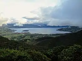 ![]() La Cocha, with La Corota Island, from an overlook stop | |