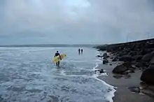 Lahinch has become one of the foremost surfing locations in Ireland, and is home to a surfing school.[19] On 14 May 2006, 44 surfers managed to ride one small wave, setting a new world record.[20] Lahinch is also a location for other watersports including kitesurfing and windsurfing.[21] Lahinch Sea Rescue, an independent lifeboat service, provides protection for water-users.
