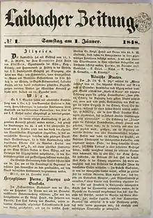 ![]() Front page of the Laibacher Zeitung, 1848 | |