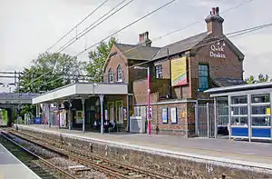 Laindon railway station is on the London, Tilbury and Southend line, serving the town of Laindon in Essex, England. It is 22 miles 69 chains (36.8 km) down the main line from London Fenchurch Street and is situated between West Horndon to the west and Basildon to the east. Its three-letter station code is LAI.