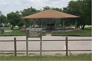 The Tonkawa Trail (Buffalo Creek Wetland Trail) is almost a mile long, and provides access to the various components of Buffalo Creek Wetland. The ground is firm due to a 4- to 6-inch layer of crushed granite. Four observation shelters along the trail provide an opportunity to observe some of the plants or animals that live in the Buffalo Creek Wetlands.[25]