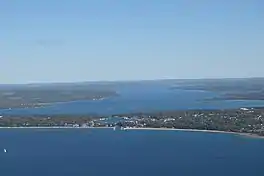 The lake was also known previously as Pine Lake and Long Lake.[1][2] It was renamed from "Pine Lake" to its current name ("Lake Charlevoix") in 1926.[3]