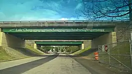 Spellings of the long name vary; in 2009, following six years of press reports, the local Chamber of Commerce agreed to have the spelling changed on its signs, but a 45-letter version of the name arrayed in a semicircle is still used.[14] Webster public schools use one long form of the name in various capacities.[5][15]