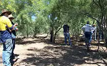 Parkinsonia forms dense, impenetrable thickets which restrict waterbird access to shoreline feeding and roosting sites, and provide a haven for feral pigs, which in turn disturb waterbird habitats.[27] It is regarded as one of the worst weeds in Australia because of its invasiveness, potential for spread, and economic and environmental impacts.[28] Wetlands are particularly vulnerable because parkinsonia can invade watercourses, cause erosion, lower watertables and take over vast tracts of floodplain.[28] At Lake Galilee it germinates freely on the moist edges of the lake.