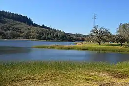 Conn Creek Dam is an earthen dam 125 feet (38 m) high and 700 feet (210 m) long containing 500,000 cubic yards (380,000 m3) of material. Its crest is 330 feet (100 m) above sea level. It is owned by the City of Napa.[2]