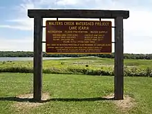 View of the main information sign for Lake Icaria in Iowa. It is located at the lake's northwest entrance off of Iowa Highway 148.