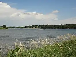 ![]() View of boats on the main ski zone of Lake Icaria in Iowa. | |