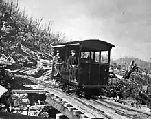 By 1903, the timber areas having been cut out around Queenstown itself, the wood cutters moved to Howard's Plains situated on the plateau north west of Queenstown. As access onto the plateau was steep, a self-acting 2 ft (610 mm) narrow gauge dual haulage was built. From the top of the incline, a tramway was laid and was extended, over a period of time, some 4¼ miles towards Lake Margaret.[1]