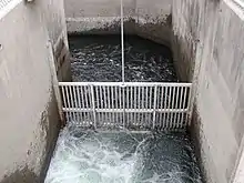 Under Nimbus Dam and Lake Natoma lies the Nimbus Fish Hatchery, operated by the California Department of Fish and Games, that was built in 1955 by the U.S Bureau of Reclamation.[3] The California Department of Fish and Games operates a visitor center here.[3] The hatchery replicates spawning environments by creating a fish ladder that guides salmon and steelheads to spawn.[3] For recreational fishing in the northern and Central California bodies of water, the hatchery produces 4 million Chinook salmon and over 400,000 Steelhead trout per year.[3]