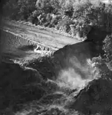 The drill assembly punctured the salt mine beneath the lake, and the water of the lake soon began entering the salt mine. Over the course of several hours, the fresh lake water began dissolving the salt and enlarging the hole, causing the lake to drain into the salt mine.[8][9]