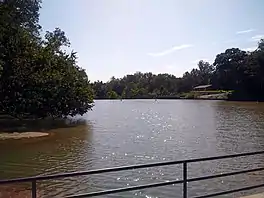 To the west and southwest of the lake are the remains of the Greenspring Branch railroad and the Northern Central Railroad, which was formerly the Baltimore and Susquehanna Railroad. The remains include the station/junction, known as the "Relay House", which burned in 1869.[11][10][notes 2]