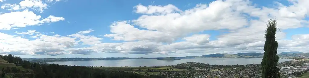 Panoramic view of Lake Rotorua from Mount Ngongotahā