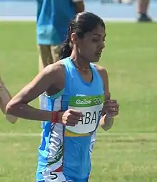 In April 2016, she again bettered the national record with a time of 9:27.09 at the Federation Cup National Athletics Championships in New Delhi.[10] At the Rio de Janeiro Summer Olympics, she bettered it with a time of 9:19.76 in her heat, qualifying to the final, and in the process became the first Indian in 32 years to enter a final in any track event.[11] At the final, she finished 10th with a time of 9:22.74.[12]