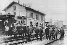 At the beginning of the twentieth century, the station had ticket gates like other stations in the Palatinate.[19][20] During this time, the station was managed by the operations and construction inspectorate (Betriebs- und Bauinspektion) of Neustadt an der Haardt and was the site of a Bahnmeisterei (office of the supervisor of track maintenance).[21] The Königliche Eisenbahndirektion (Royal railway division of Ludwigshafen, which was established when the Palatine Ludwig Railway Company (Pfälzische Ludwigsbahn-Gesellschaft) was taken over by the Royal Bavarian State Railways (Königliche Bayerische Staats-Eisenbahnen) in 1909, became the Reichsbahndirektion (Reichsbahn division) of Ludwigshafen after the founding of the Deutsche Reichsbahn in 1922. A year later, the railway workers employed at the railway station were expelled during the operation of the railway by the French military during the occupation of the Palatinate by France. They then returned to work.[22] During the dissolution of the railway division of Ludwigshafen on 1 April 1936, it was transferred to the railway division of Mainz and the Betriebsamtes (RBA) Neustadt (operations office of Neustadt).[23][24][25]