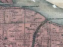 The 1877 plat map of Cooper County shows that Thomas Mellor operated a distillery in the northwest quadrant of section 35 where the Lamine River flows into the Missouri River.