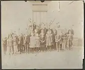 On June 8, 1804 the Lewis and Clark Expedition traveling on the Missouri River arrived at the mouth of the LaMine River in what would come to be known as the Lamine Township.[2] LaMine was settled in 1811 by Revolutionary War veteran David Jones (1761-1838), his son-in-law Stephen Turley (1786-1851), Jesse B. Turley (1801-1861), Samuel Turley (1790-1870), Thomas McMahan (1786-1859), James McMahan (1789-1857), son-in-law William Reid (1774-1854), and Saunders Townsend.[3][4] At that time, Missouri was still known as the Louisiana Territory but would be renamed as the "Missouri Territory" in 1812 with St. Louis as its capital.