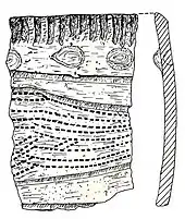 The Mellor settlement, known as Site 23CP1, is at the confluence of the Lamine River with the Missouri River on the personal property known as "Cape Verde" [ 38°58′59″N 92°51′49″W / 38.983083°N 92.863532°W / 38.983083; -92.863532 ] owned in the early 1900s by Thomas Edward Mellor and then by his son John Paul Mellor. "At least 20 large earthen burial mounds overlook the Mellor settlement from the north-facing Missouri River escarpment."[22] The Imhoff settlement is about one-half mile downstream from the confluence of the Blackwater River with the Lamine River. These two settlements were excavated in the 1970s by archaeologist Marvin Kay and the findings were published in the Missouri Archaeological Society Research Series in 1980.[23]