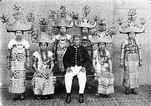 Originally the lineage of the Lampung people came from Sekala Brak kingdom.[7] However, in its customary sense the Lampung people developed and became two people group, namely the Saibatin Lampungs (coastal) and the Pepadun Lampungs (interior).[8] The customs of the Saibatin people are well known for its aristocracy,[8] while the customs of the Pepadun people which emerged later had democratic values developed in opposed to the aristocracy values held by the Saibatin people.[8]