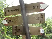 Lana is a village which is divided into three parts: Oberlana, Mitterlana and Niederlana. It is a popular tourist spot offering sports such as tennis, football, golf, minigolf and ice-skating among others. During summer, locals and tourists alike enjoy swimming, hiking and cycling because there are a lot of good cycle paths.