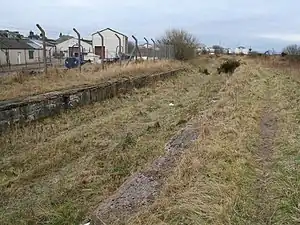 • Lyoncross Junction; trailing junction from Paisley and Barrhead District Railway line; a passenger station was planned for the location but the scheme was abandoned when planned passenger operation on the Barrhead line was cancelled; the track configuration at the location is arranged for an island platform;