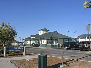 Lancaster station is served by 22 Metrolink Antelope Valley Line trains (11 in each direction) each weekday. Weekend service consists of 12 trains (6 in each direction) on both Saturday and Sunday. On all days, trains are evenly spaced throughout the day.[3]