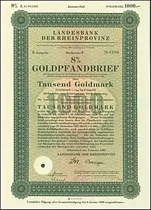 Covered bond of the Landesbank der Rheinprovinz, January 1930
